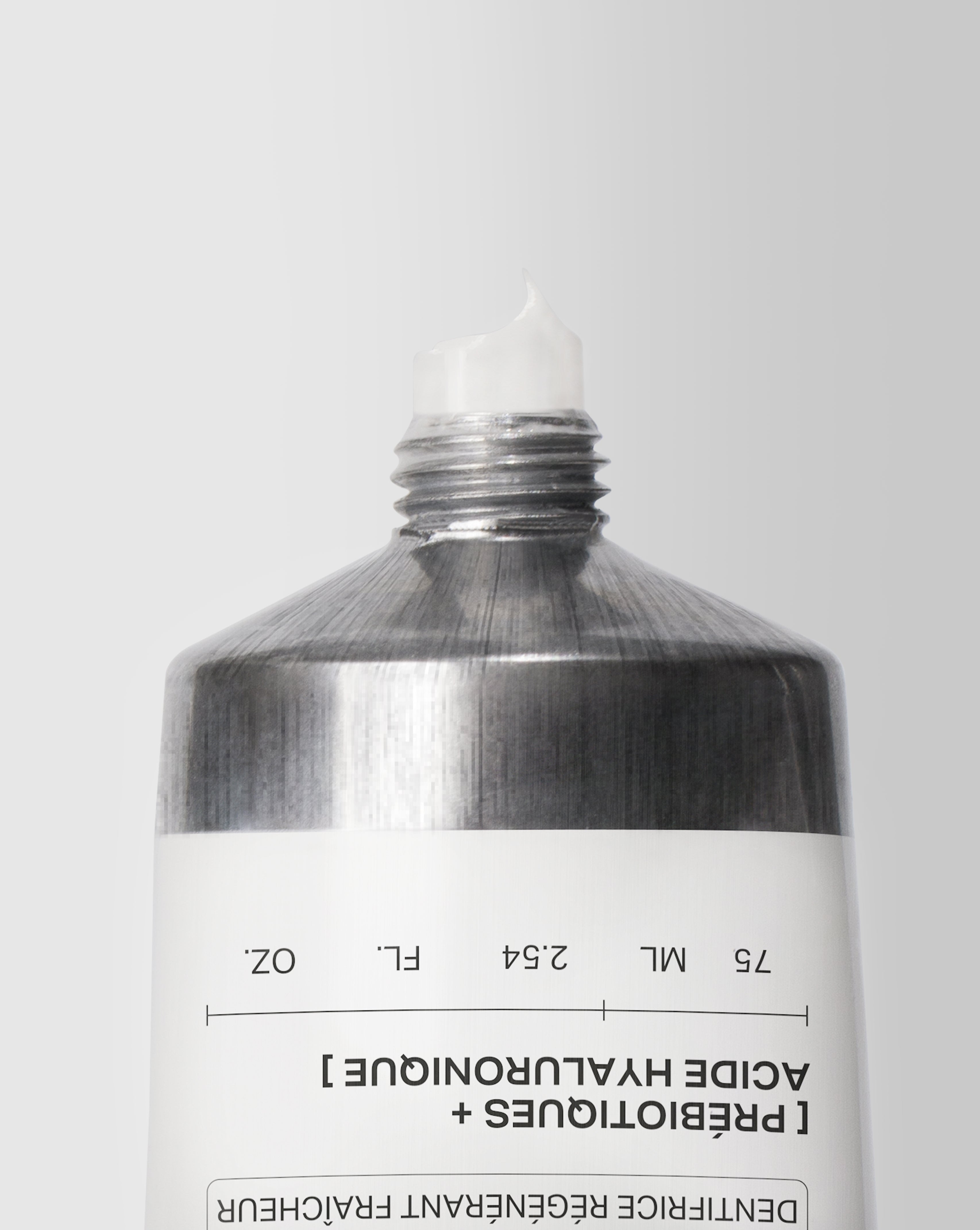 Soin nettoyant microbiotique à la texture gel-crème rafraîchissante, concentré en acide hyaluronique et en actif blanchissant. Il régénère les gencives, rééquilibre l'hydratation buccale et ravive l'éclat du sourire. Sans fluor.